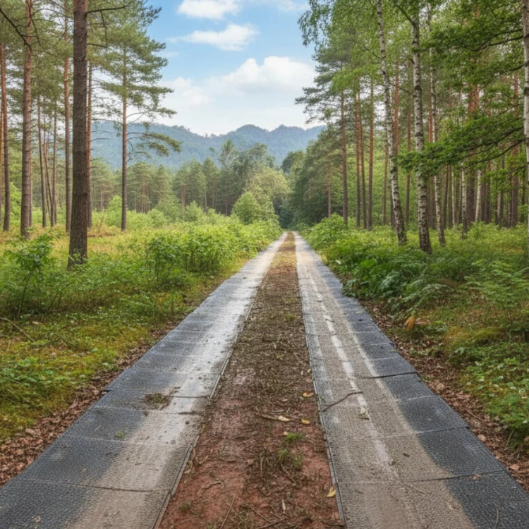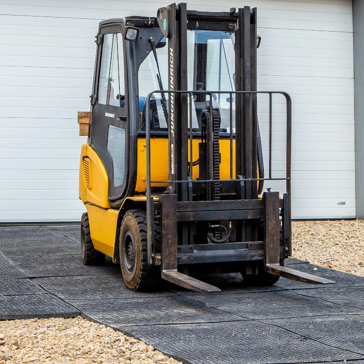 Nasze płyty / maty drogowe są lekkie, niezwykle wytrzymałe i łatwe w montażu, co czyni je doskonałą alternatywą dla betonu, kostki brukowej czy tradycyjnych podsypek.